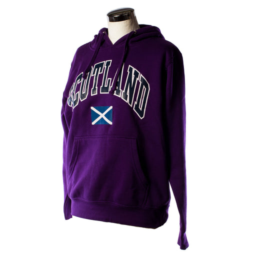 Heritage Of ScotlandModel: A02866_PURPLE 50% cotton / 50% polyester Size Range XS to XXL Plain with Scotland & Saltire print Hooded Top A brilliantly designed Scot...