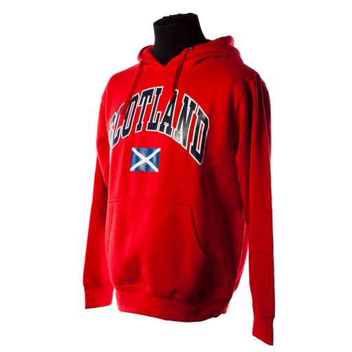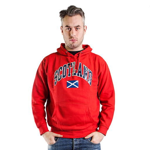 Heritage Of ScotlandModel: A02866_RED 50% cotton / 50% polyester Size Range XS to XXL Plain with Scotland & Saltire print Hooded Top A brilliantly designed Scotlan...