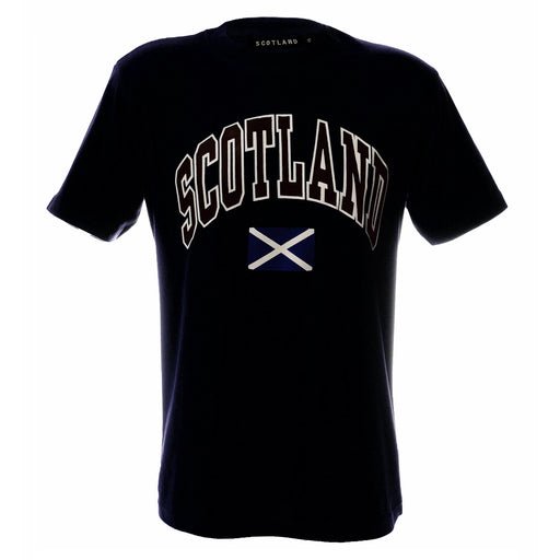 ScotshirtsModel: A04055_NAVY 100% cotton Size Range XS to XXL Plain with Scotland and Saltire print Standard T-Shirt Best way to show off your Scottishness e...