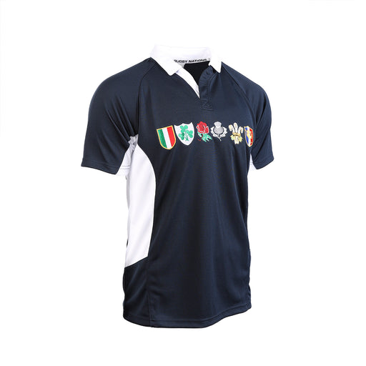 Model: A07979_NAVY 100% Polyester Size Range XS to 3XL 6 Nations shields embroidery on the front Rugby Top A comfortable rugby shirt with the Six N...