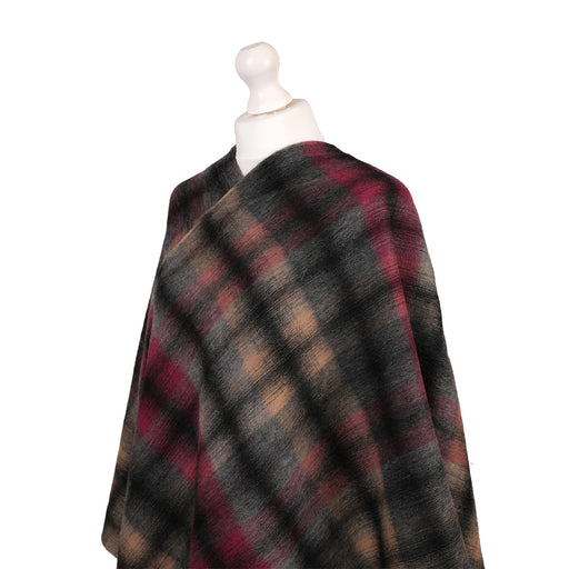 Add effortless style to your wardrobe with this chic tartan poncho in deep shades of black, charcoal, burgundy, and camel. Crafted from a soft wool...